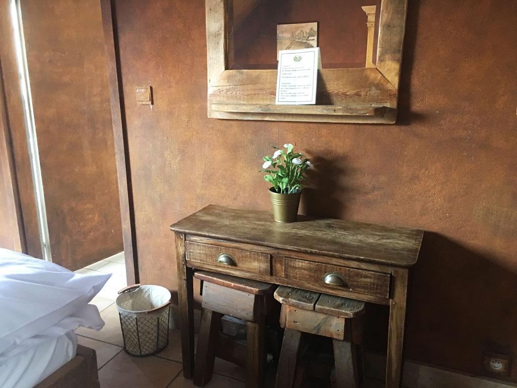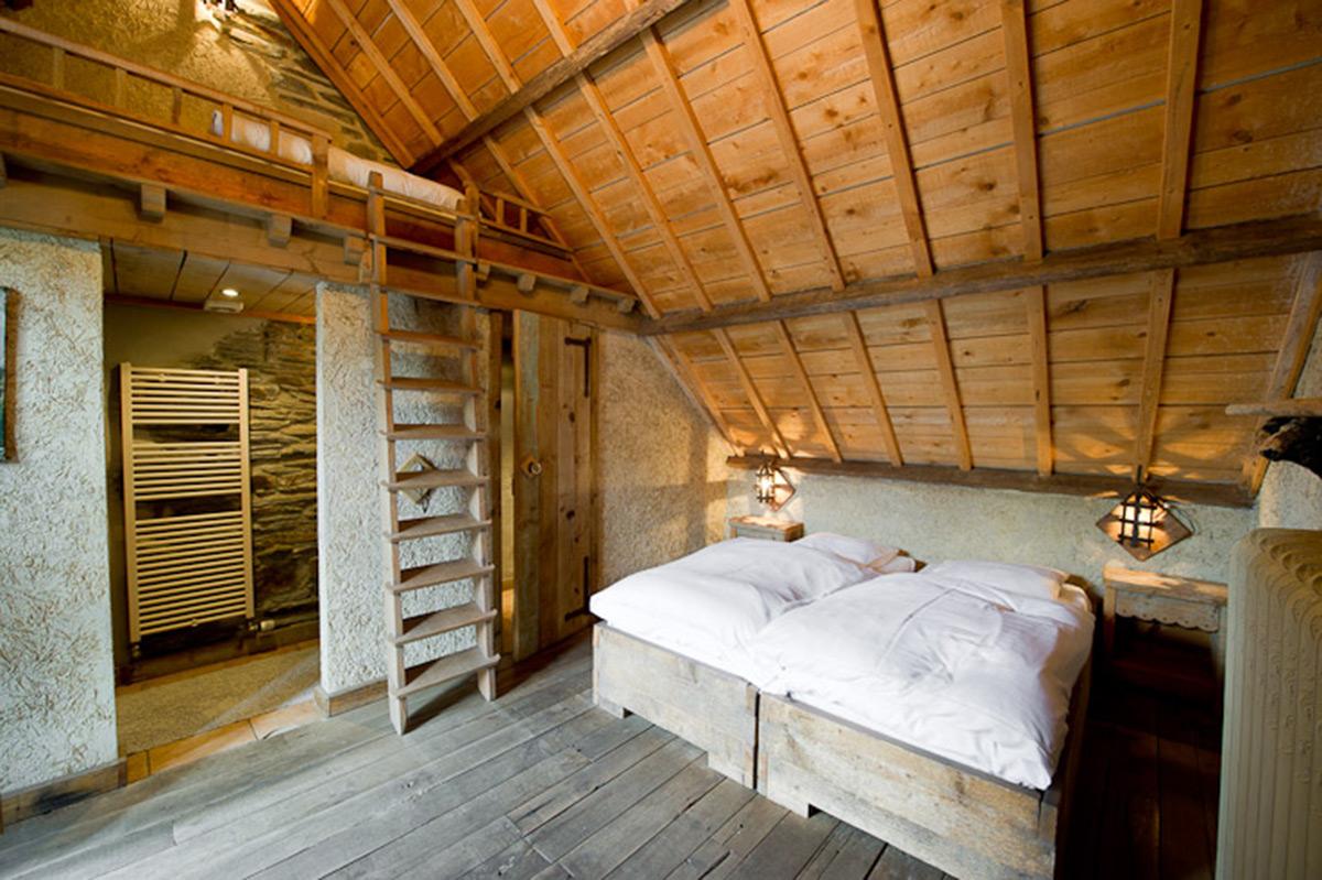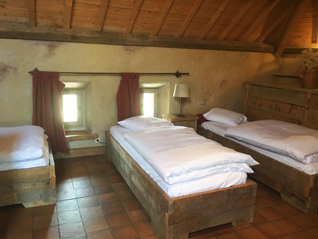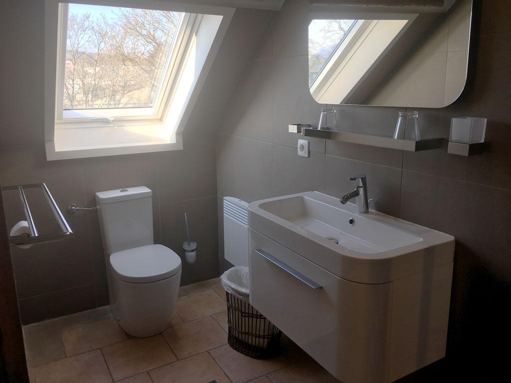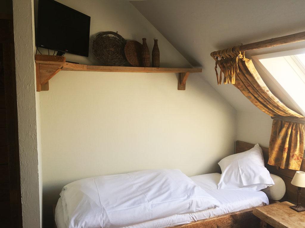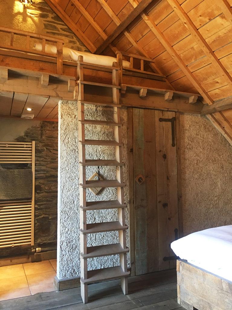 - 3 Schlafzimmer: 2-3 Personen, 2 Einzelbetten und 1 « Mezzanin-Bett » über Leiter zugänglich, TV, privates Duschbad mit Waschbecken + WC