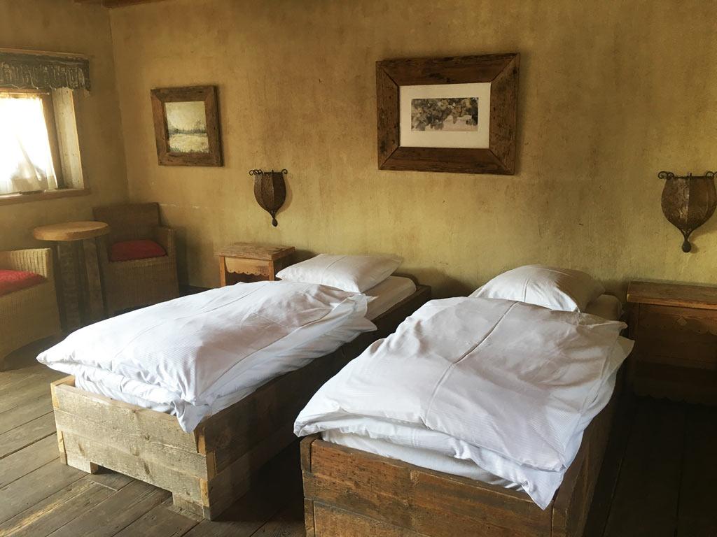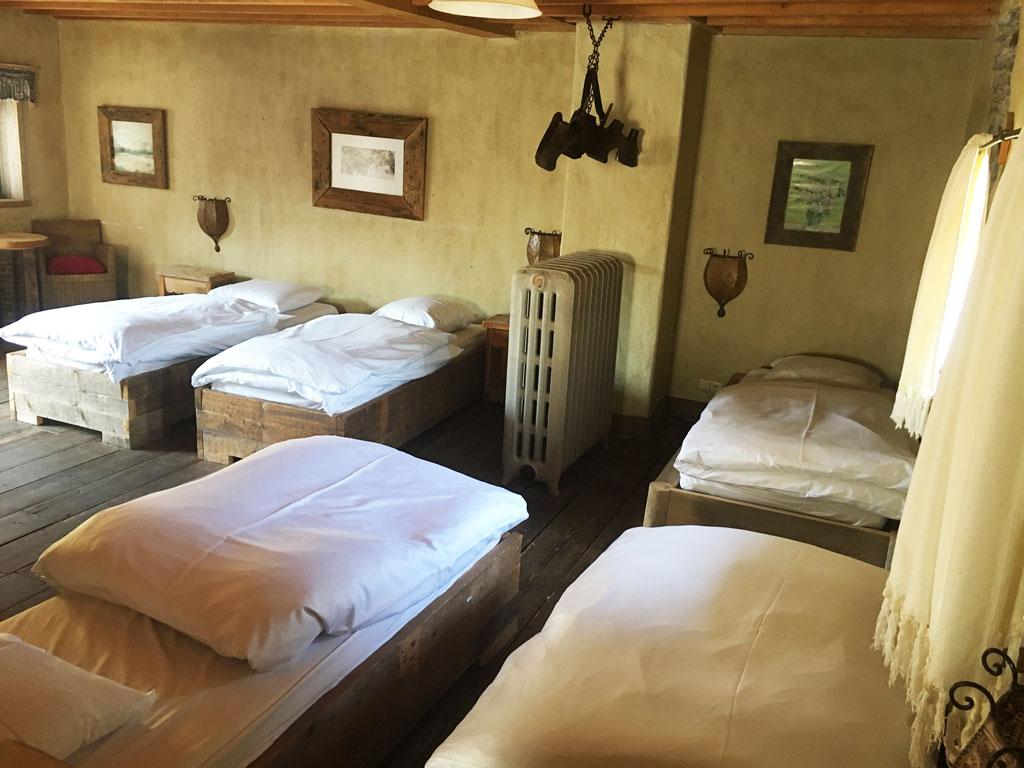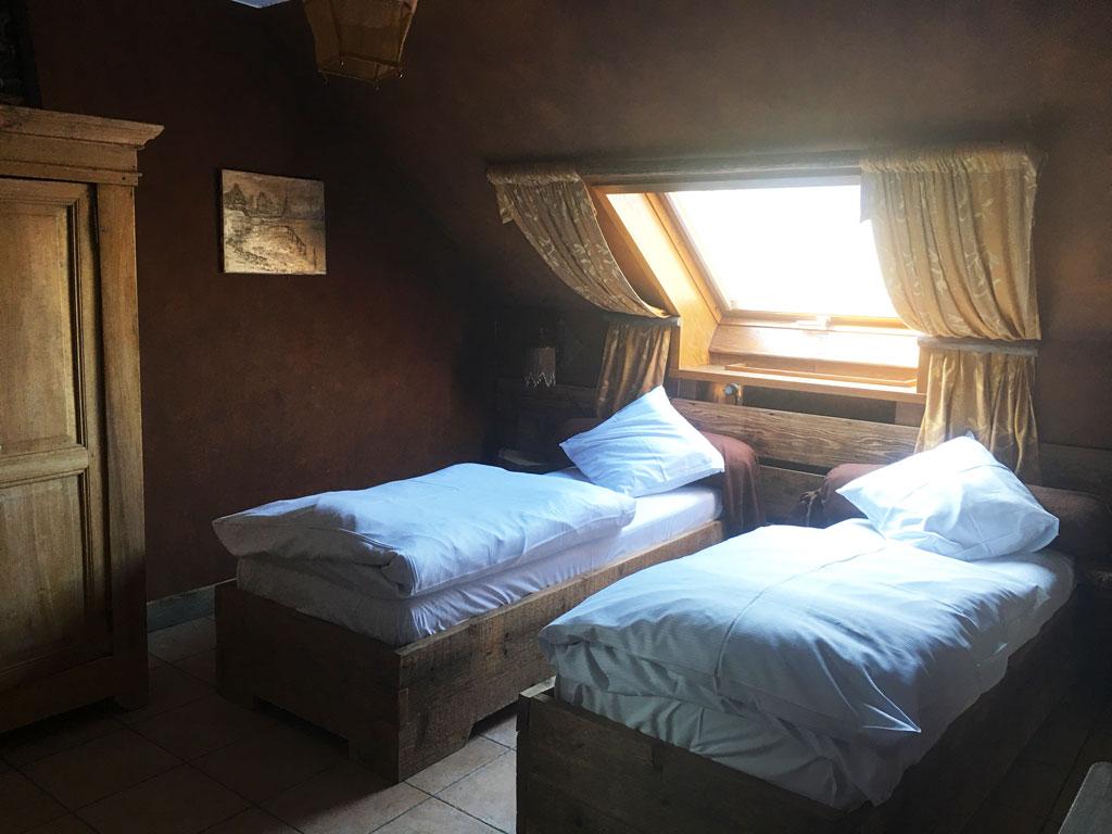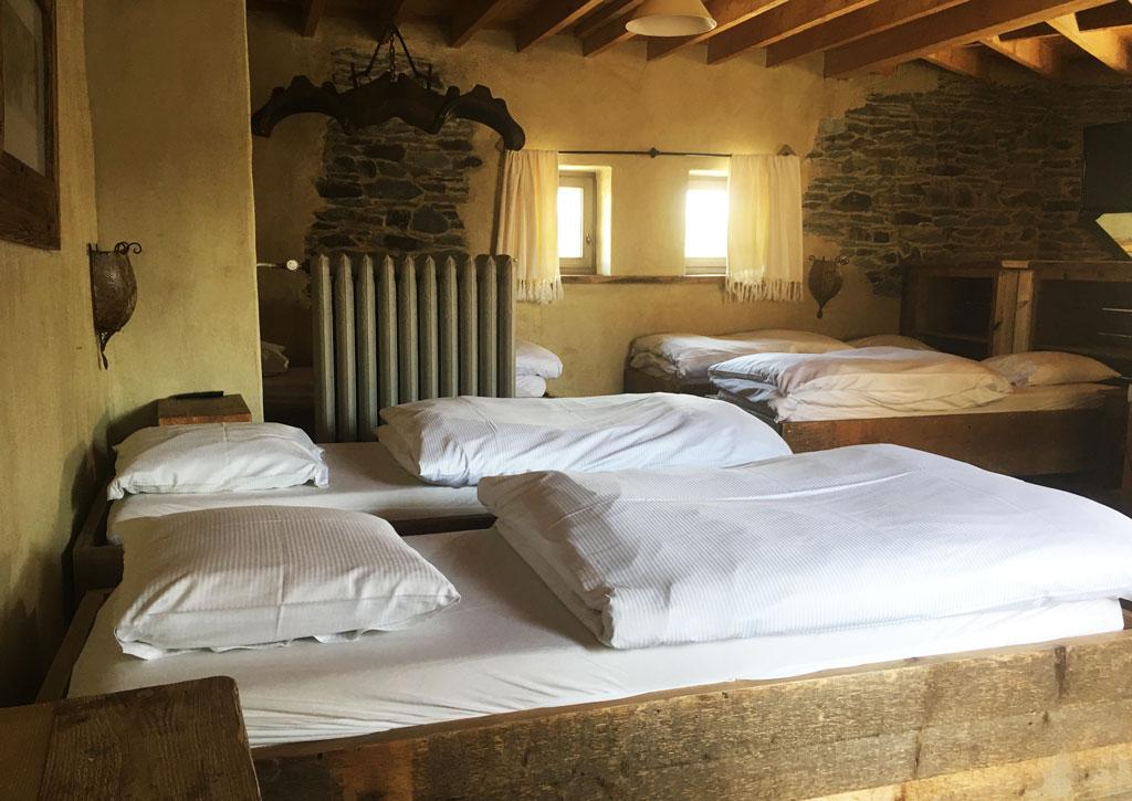 - 1 Zimmer: 5 Personen (Einzelbetten), TV, privates Duschbad mit Waschbecken + WC (über einen externen Übergang erreichbar)