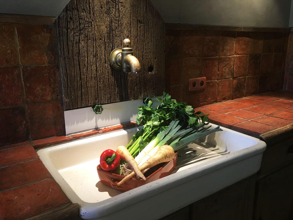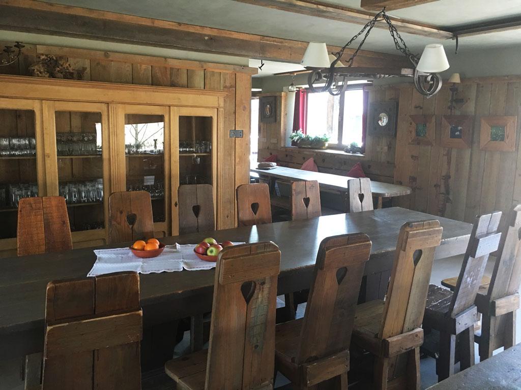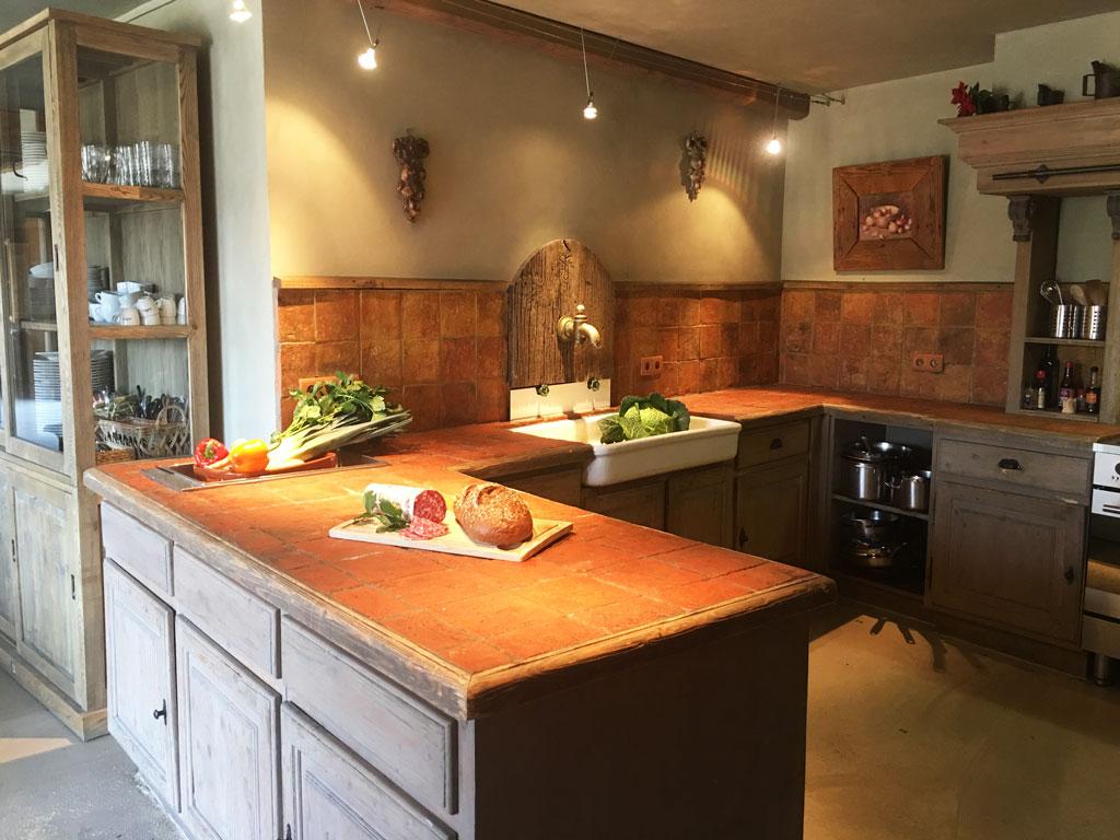 - 2 Tische für je 14 Gäste (Wohnzimmerseite, Küchenseite)
