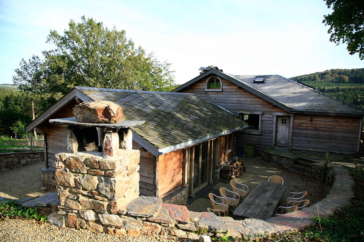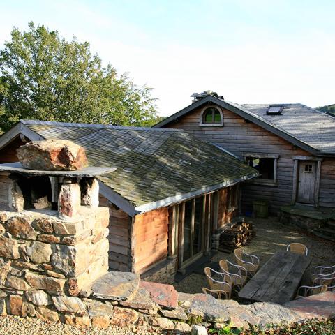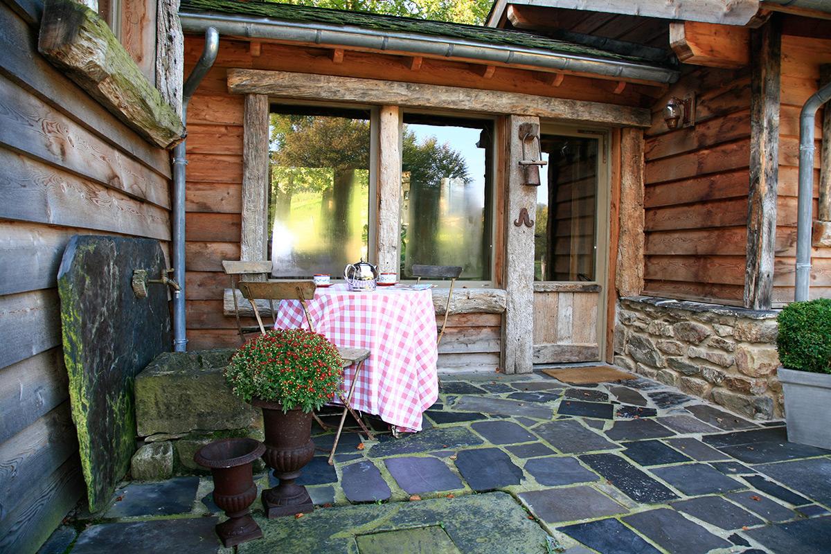 - Grande terrasse à l’arrière de la maison avec tables et chaises