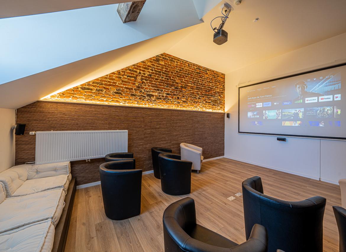 - capacités : 12 personnes assises autour d’une table ou 25 personnes assises (formation cinéma)