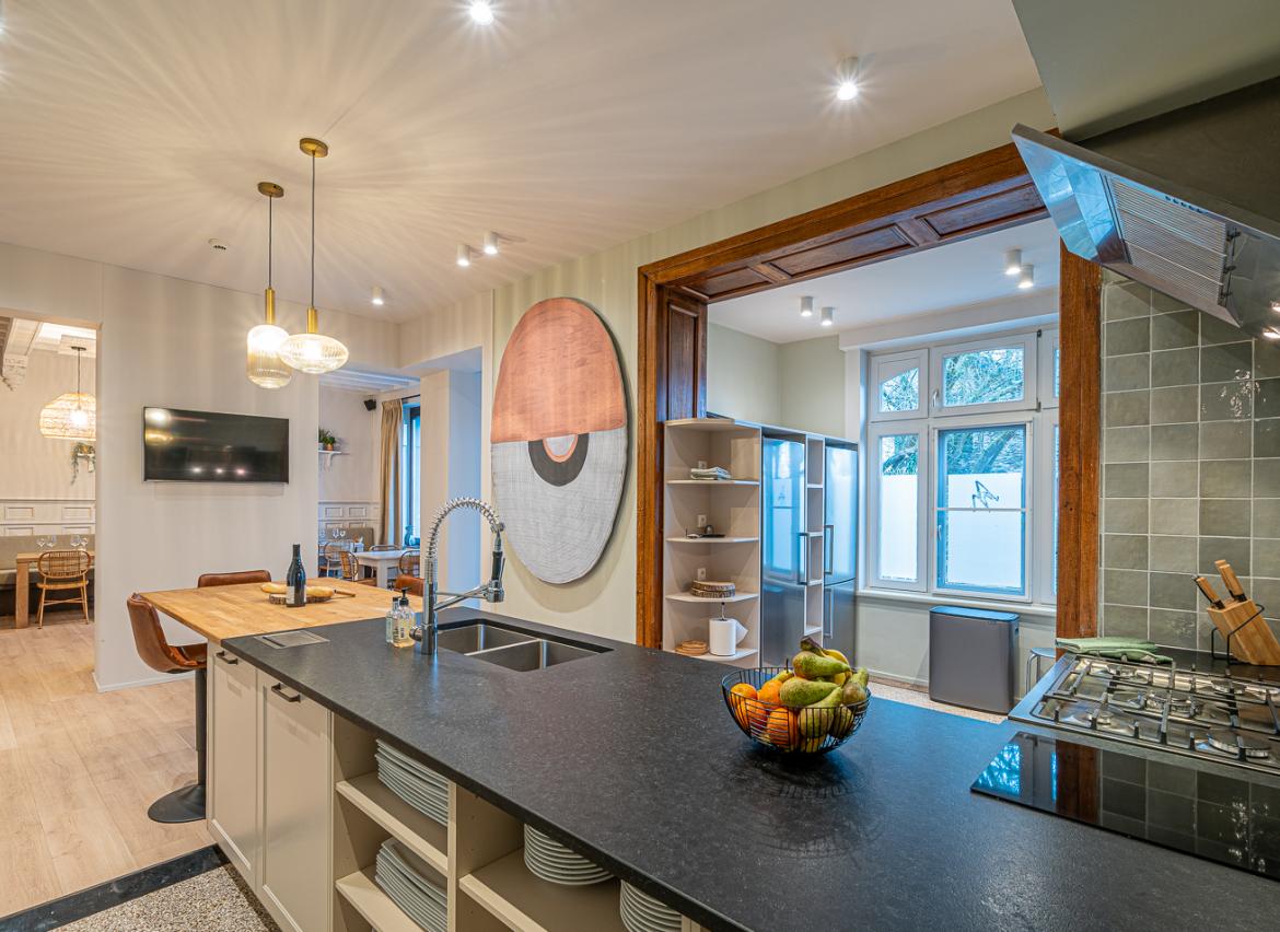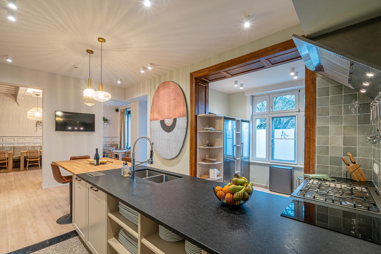 • Grande cuisine ouverte super-équipée (cuisinière au gaz + lave-vaisselles professionnels)