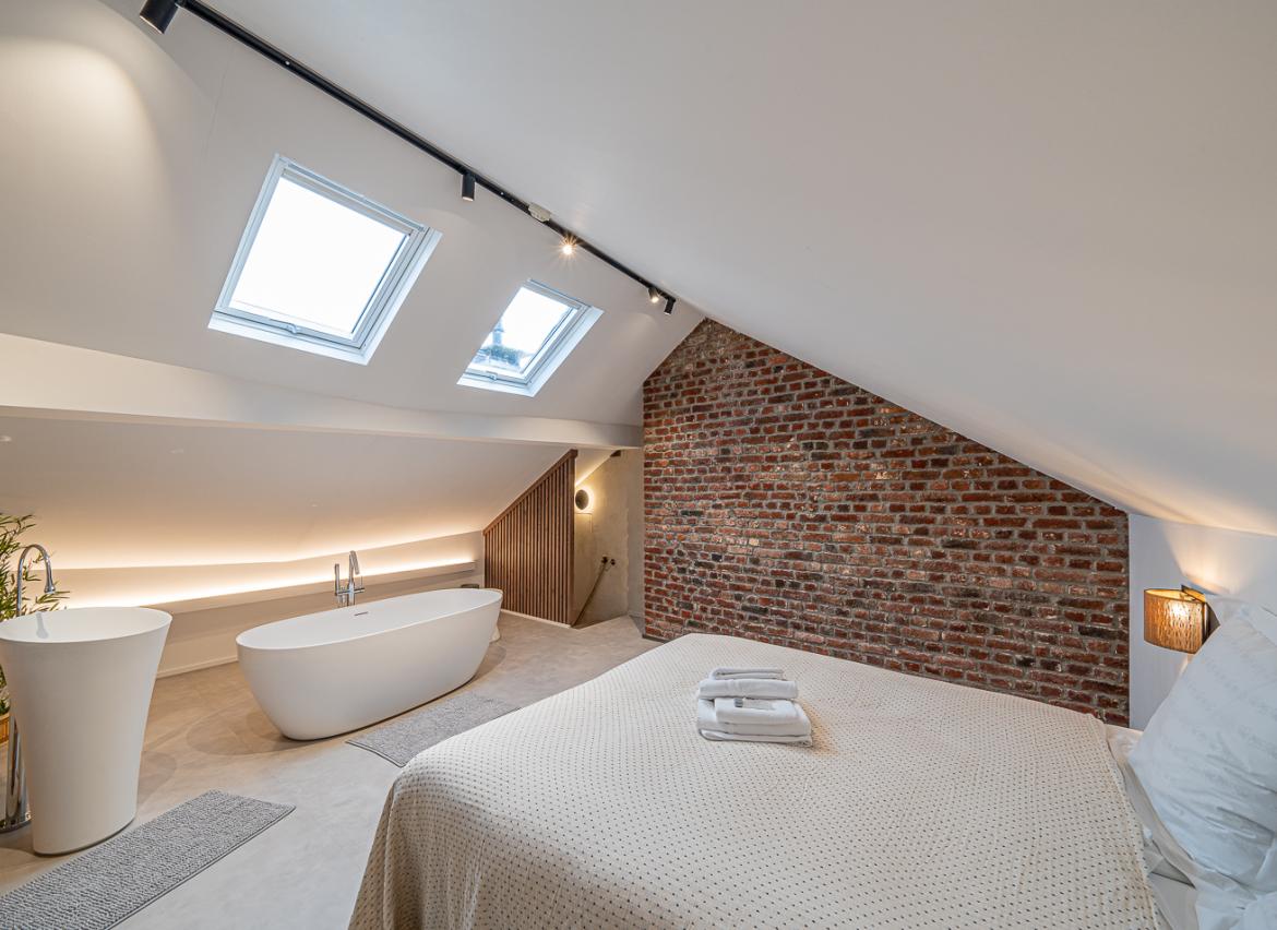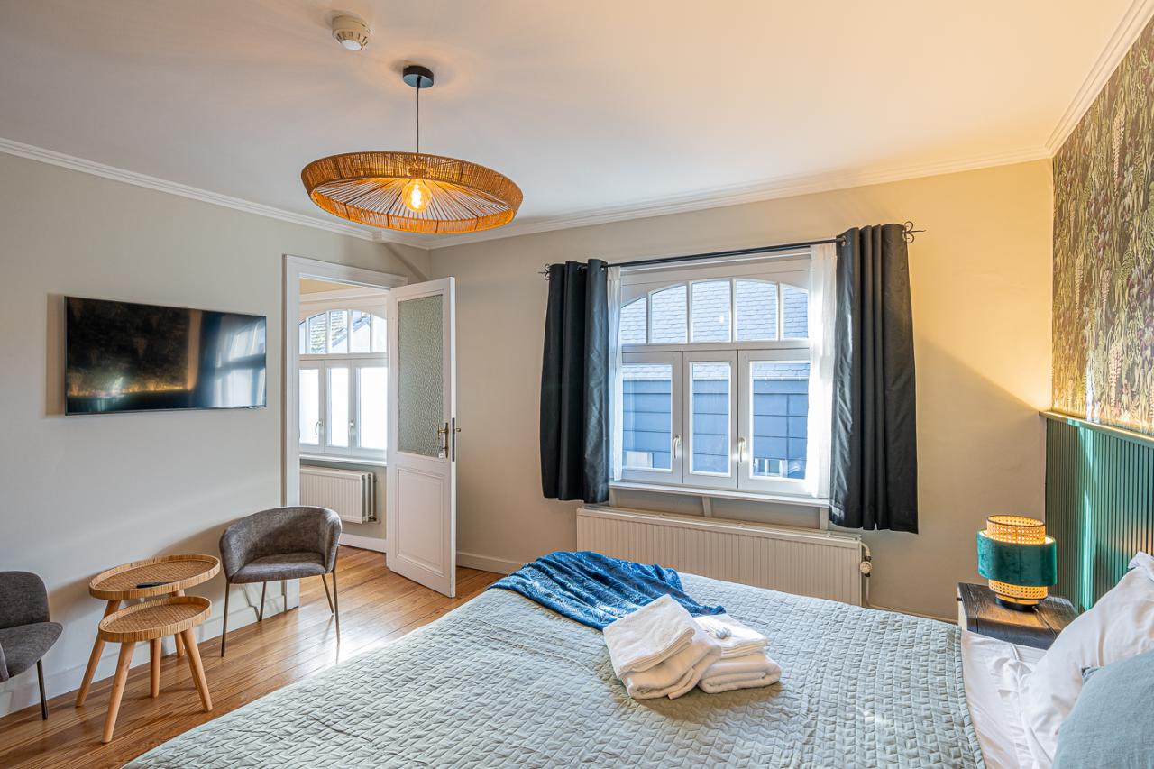 • 4 chambres pour 2 personnes avec lit ‘double’ (2 matelas 90x200), salle de douche privative, WC