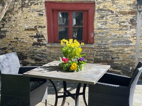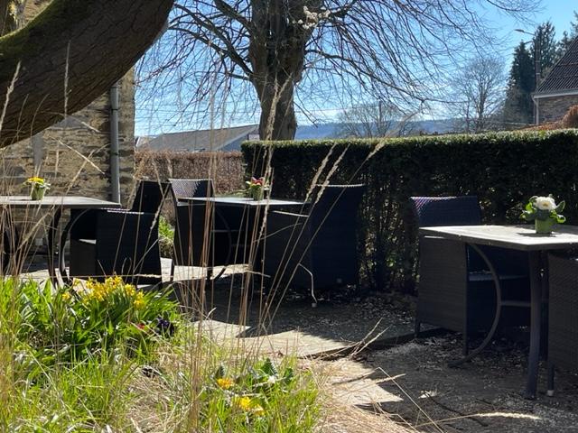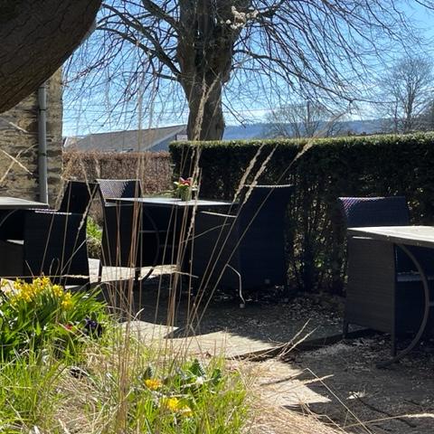 - Très grande terrasse avec plusieurs tables et chaises pouvant accueillir jusqu’à 40 personnes