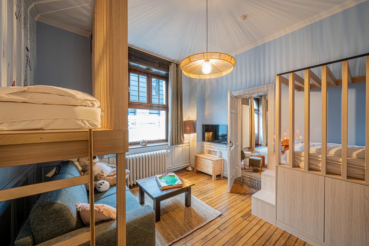 • 1 « salle de jeux » avec 2 lits (matelas 90x200) pour enfants/adolescents, une salle de douche avec WC peut être partagée avec la chambre du REZ